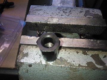 En Vipparmsmutter är inte gängad hela vägen igenom och eftersom den är härdad går det inte att gänga upp den med mina grejor.