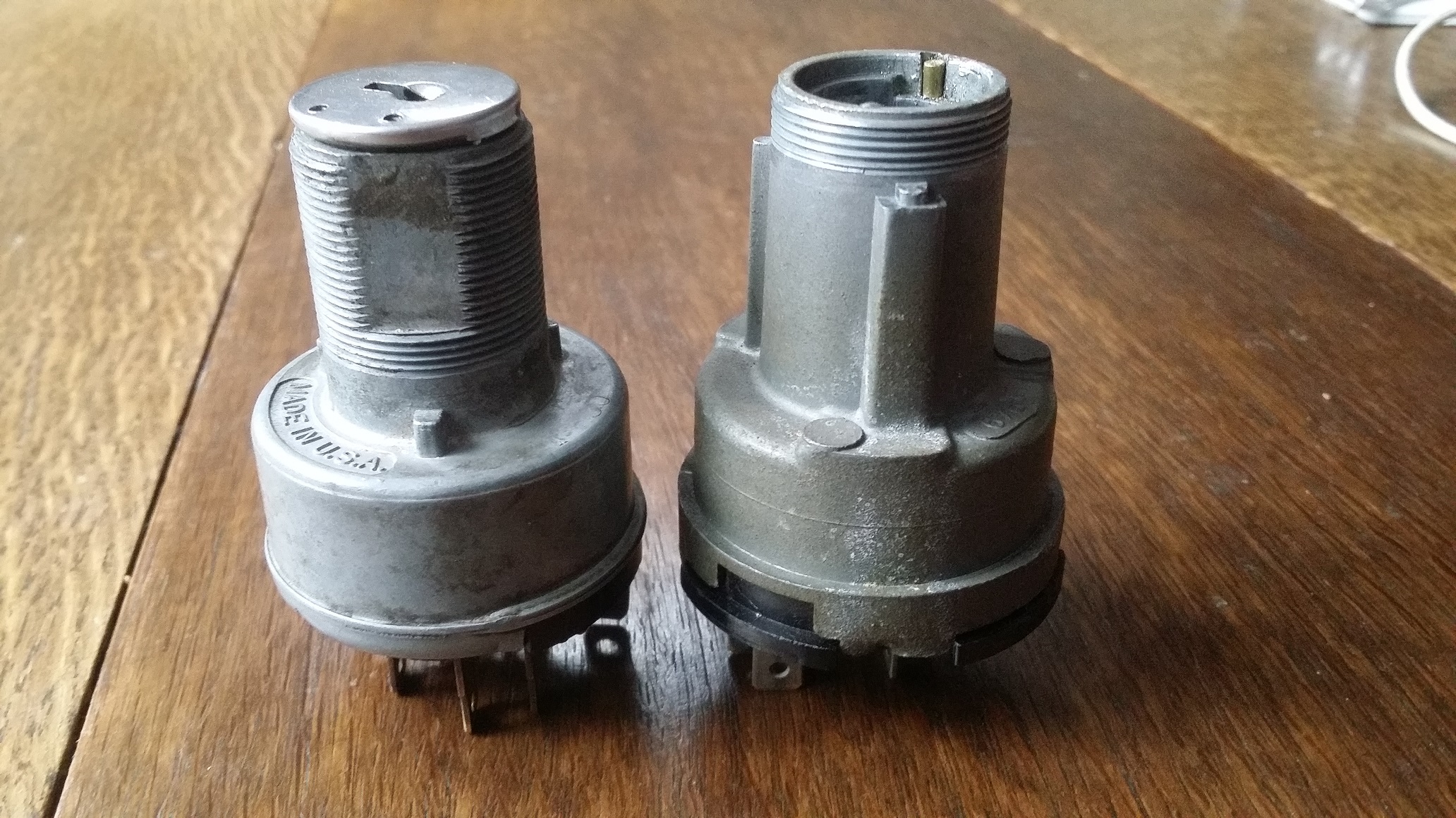 Problem nr 2 : Det nya tändningslåset ser inte ut som mitt gamla. Låset sitter ju som i en cylinder och utsidan på denna är gängad för att man skall kunna skruva fast den på instrumentbrädan , den nya är gängad ca 2,5 cm medans den gamla bara 7 mm. Sen så sitter den som små " stopp pinnar/styrningar " som på den nya mäter ca 5 mm mot 2,5 cm på den gamla :shock: . Detta medför att låset sticker ut en bra bit utanför instumentbrädan :( Bifogar en bild så det blir lite lättare å förstå ;)