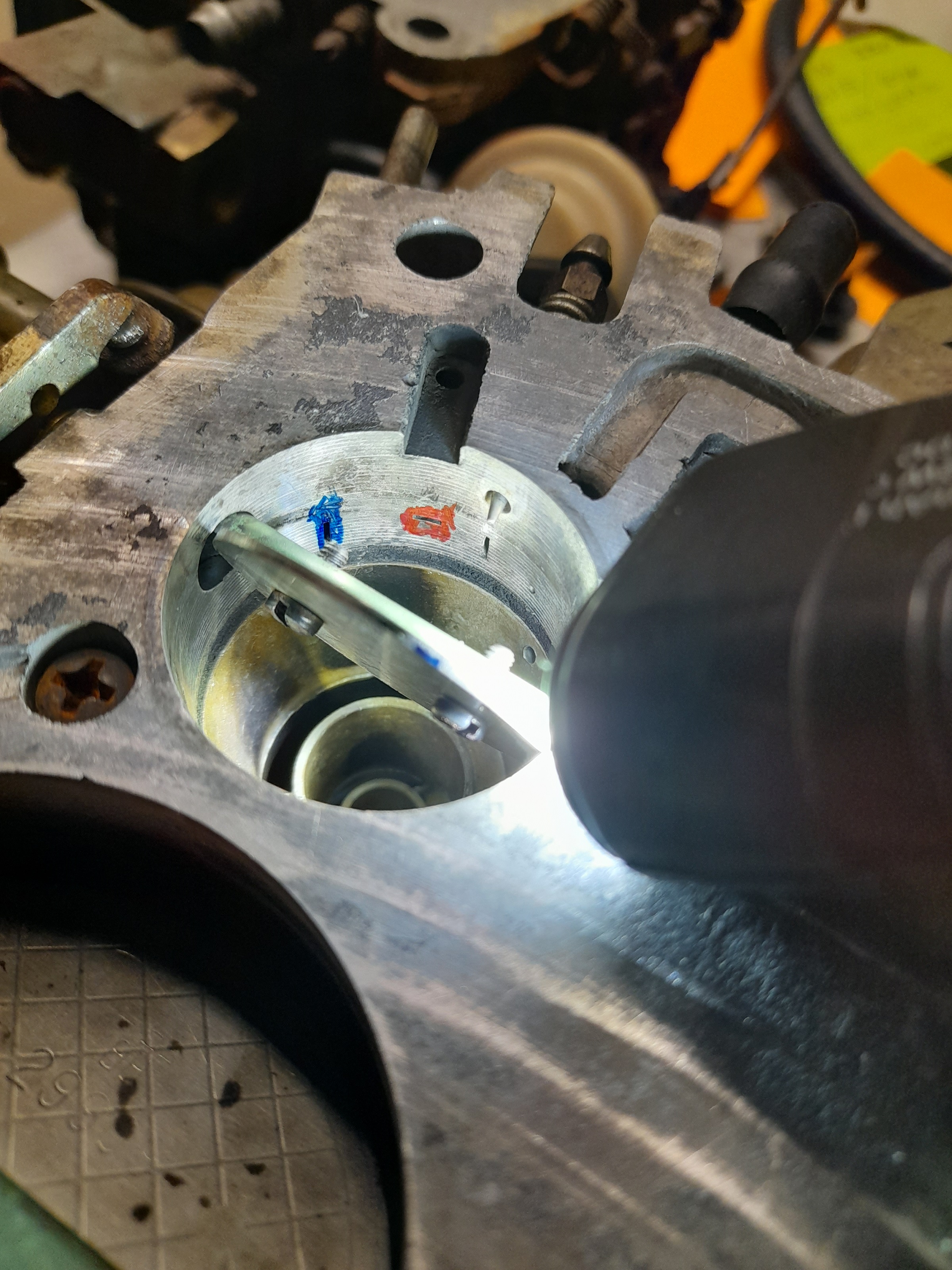 Jag ser att det är sot runt "idle bypass air" öppningarna och det tyder på otätt flottörsystem och/eller felaktig tändpunkt samt allmänt mager tomgång/lågfartkrets.
