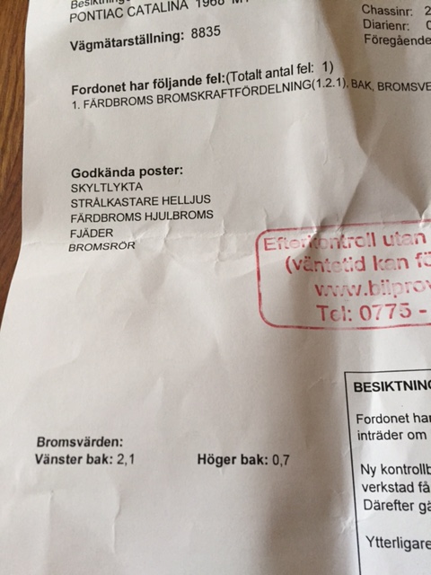 Men jag vet inte, kanske ska jag prova och besikta igen och se om det blev någon skillnad på bromsvärdena.