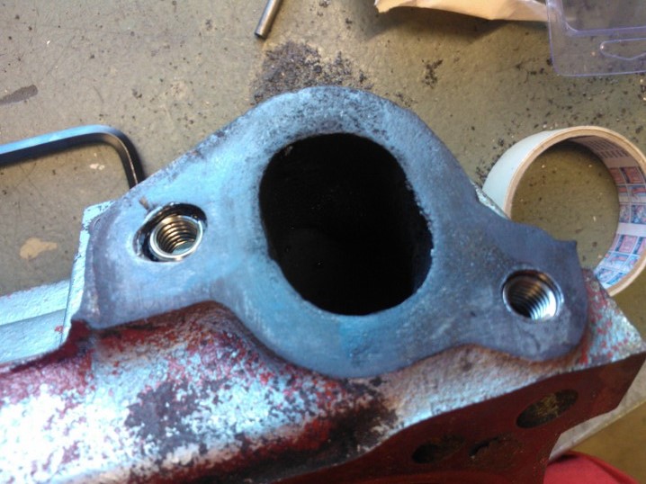 Yttre gängorna på avgasportarna är centrerade med hjälp av en ny orginal plåt-packning, dom var lite skelögda och det var M8 gängor.