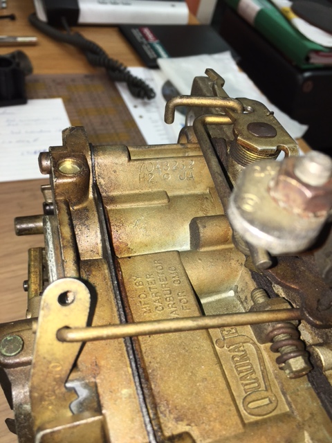 773-74 Pontiac Q-jet 750cfm, med auto. Gjuten aug. 1972. Enligt de uppgifter jag hittade satt den på 400/455 men inte säkert det stämmer.