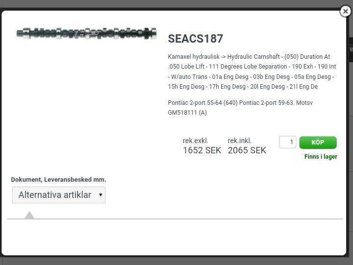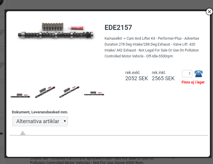 1Har en fråga angående kamaxlar. Håller på att renovera min 389 och den är borrad 0.55 till en 400. Min fråga är, hansen har en sealed power (seacs187)som motsvarar originalet till min 2-ports motor och jag ska fortsätta med 2-port med original förgasare. Men jag blev rådd att gå upp på ett kitt från edelbrock(ede2157) med en prestanda kamaxel för att få lite bättre prestanda och ekonomi. Vad tror ni om det eller ska jag köra på en motsvarande original? Tänker även på dom pressade original vipparmsbultarna å så.
